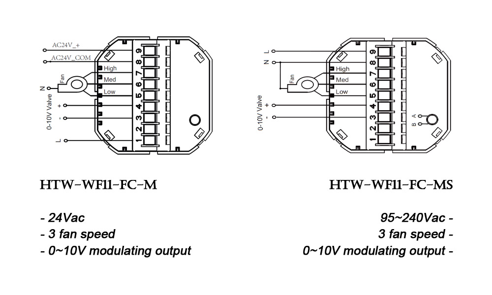 HTW-WF11-FC series smart fan coil thermostat is widely used in these environments like Homes, Residential buildings, Schools, Hotels, Hospitals, Offices and etc. to main an ideal room temperature purpose.