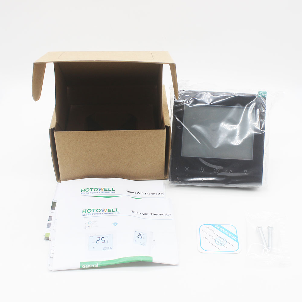 HTW-WF11 series thermostat is widely used in these environments like Homes, Residential buildings, Schools, Hotels, Hospitals, Offices and etc. to maintain an ideal room temperature. It can be used in Electric Underfloor Heating, Water Heating, or Water/Gas Boiler systems.