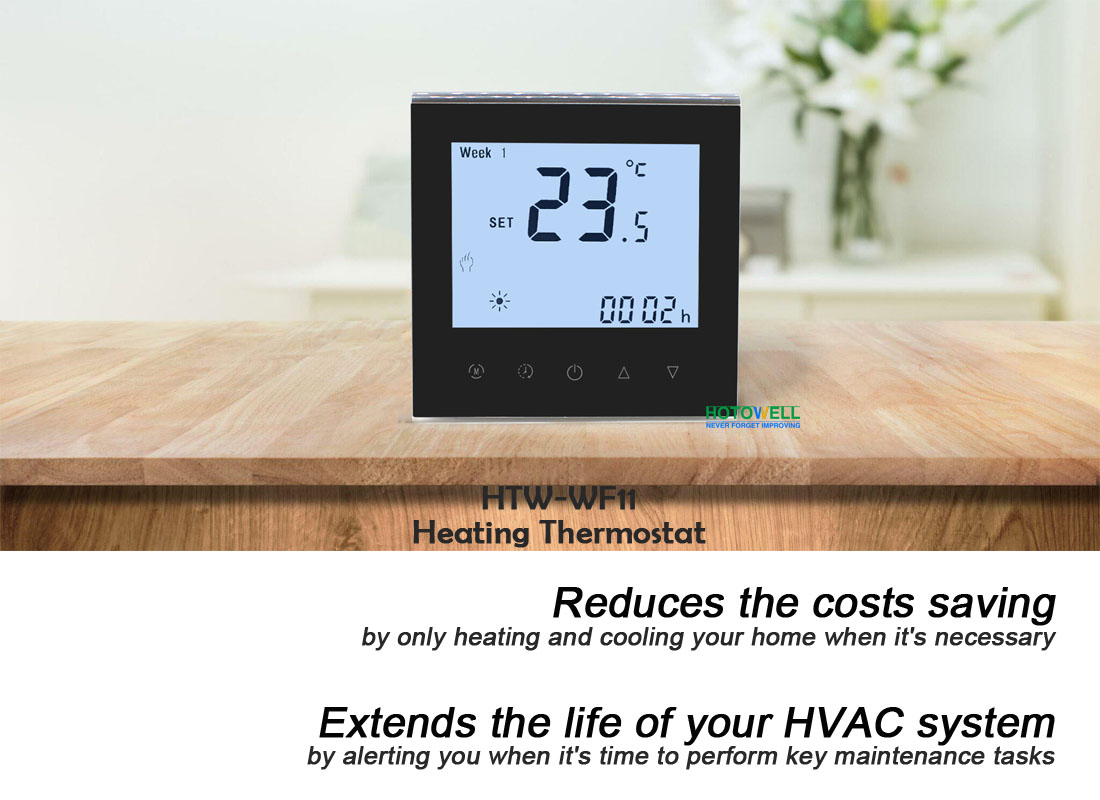 HTW-WF11 series Wi-Fi thermostat is widely used in these environments like Homes, Residential buildings, Schools, Hotels, Hospitals, Offices and etc. to main an ideal room temperature purpose.
