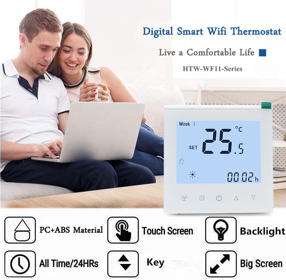 HTW-WF11 series Wi-Fi thermostat is widely used in these environments like Homes, Residential buildings, Schools, Hotels, Hospitals, Offices and etc. to main an ideal room temperature purpose. It can be used in Electric Underfloor Heating, Water Heating or Water/Gas Boiler systems.