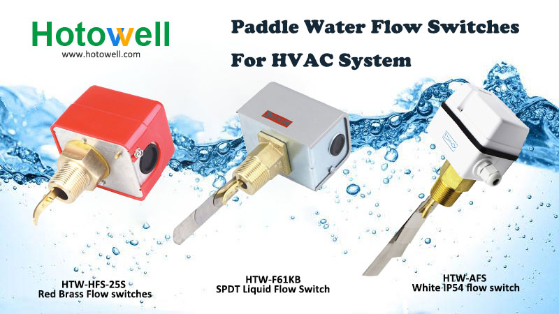 Waterproof liquid flow switches control and monitor liquid flow of boilers, pumps, etc., of heating, cooling, and air conditioning equipment.