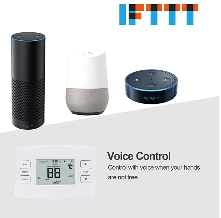 HTW-MT09 Wi-Fi Smart Thermostat is designed to bring comfort to people’s life whether you are at home or on-the-go. Integrated with Wi-Fi 2.4Ghz, it allows you to have the remotely access,change, or program your room temperatures at anytime, anywhere. You are also able to use smart controls from Google Home/, Amazaon Alexa. And Geo-fencing function is avaliable on Application.