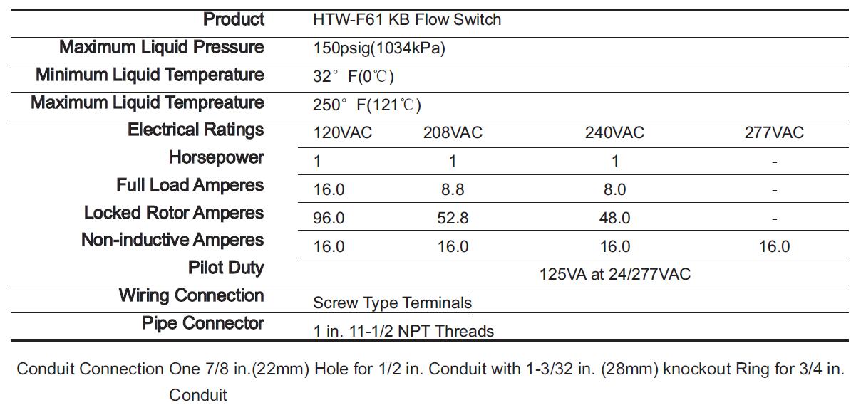 HTW-F61KB Liquid Flow Switches are Single - Pole, Double - Throw (SPDT) flow switches that are used in liquid lines carrying water,ethylene glycol,or other liquids not classified as hazardous, They can be wired to energize one device and de-energize another device powered from the same source when liquid flow either exceeds or drops below the set flow rate.