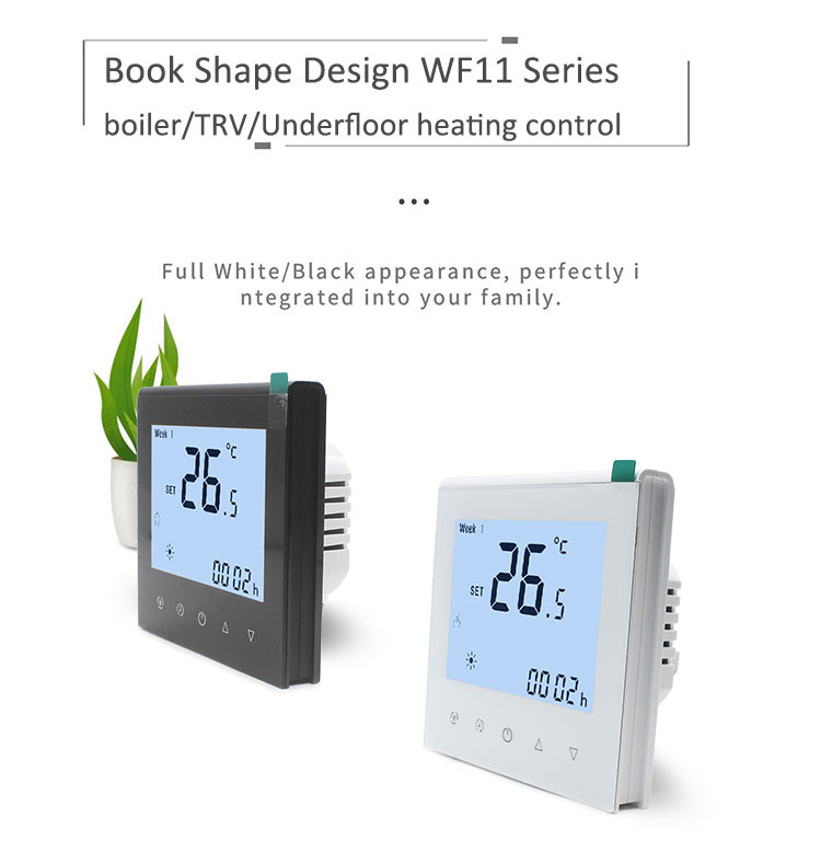 HTW-WF11 series Wi-Fi thermostat is widely used in these environments like Homes, Residential buildings, Schools, Hotels, Hospitals, Offices and etc. to main an ideal room temperature purpose. It can be used in Electric Underfloor Heating, Water Heating or Water/Gas Boiler systems.