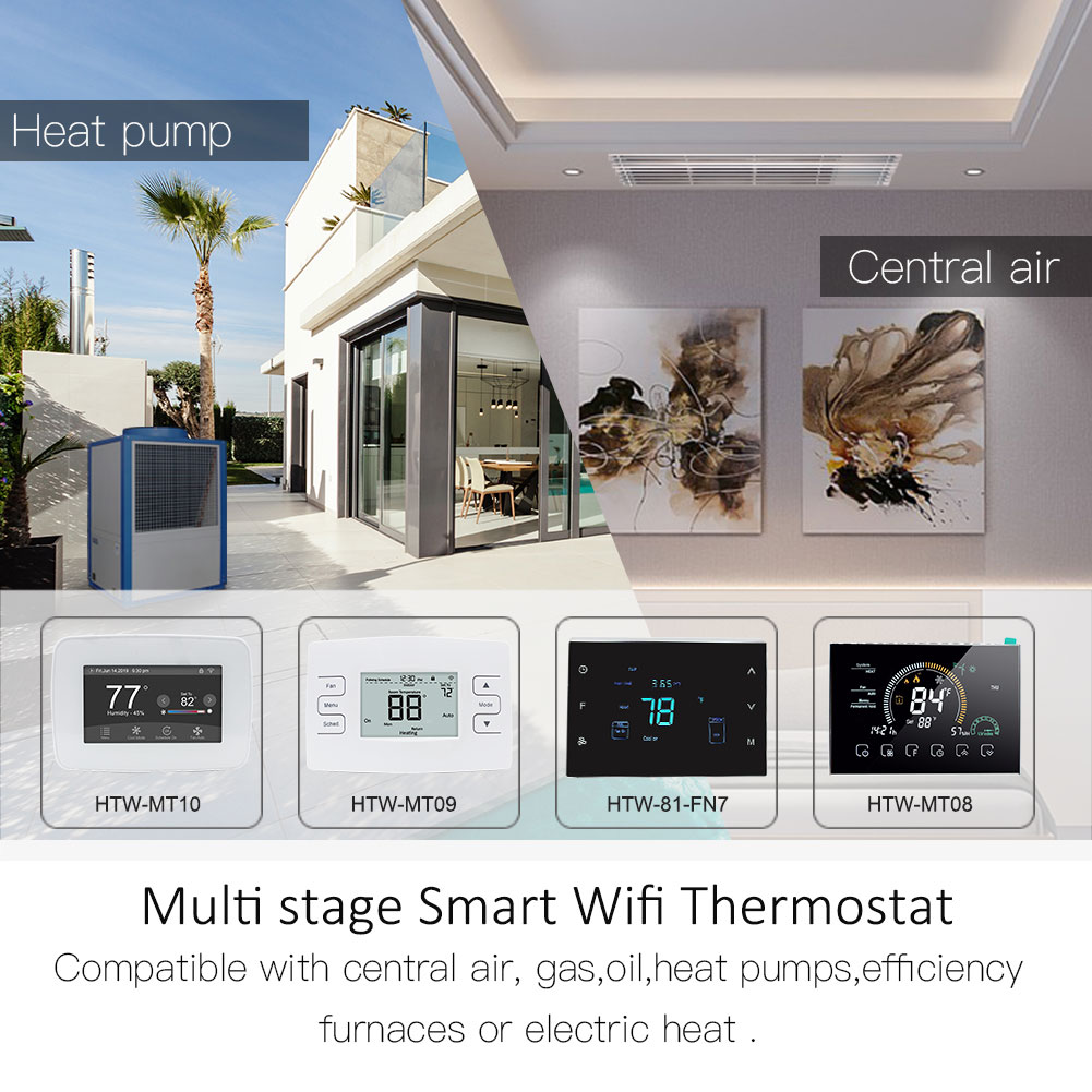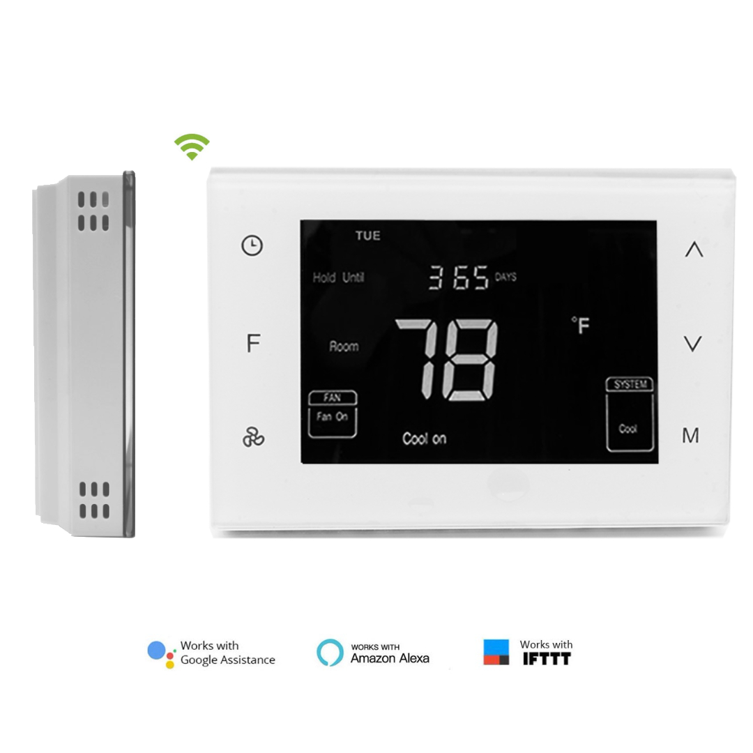 HTW-81-FN7WF smart thermostat combines user-friendly touch sensitive buttons with WiFi wireless smart control application, offering unparalleled user control. Its local efficient control system and remote wireless smart control save up to 32% heating & cooling cost. Local energy-saving programmable solution for providing highly accurate temperature control. Remote wireless control through the application for providing an easy and comfortable lifestyle. Program a full 7 days schedule or change the settings through the App for total room control. The Apps support Google home and Amazon echo for good human-machine communication.