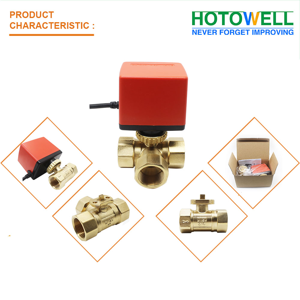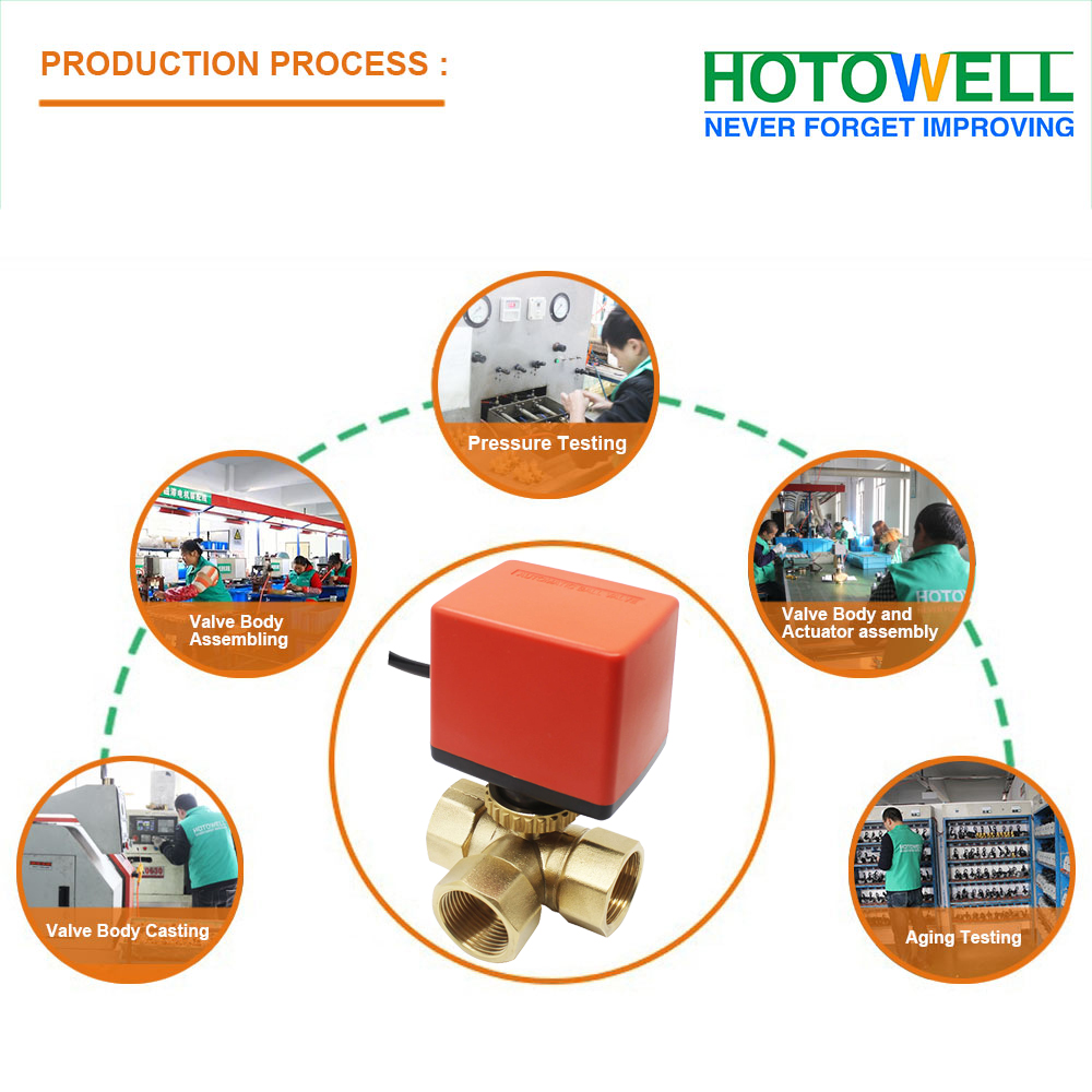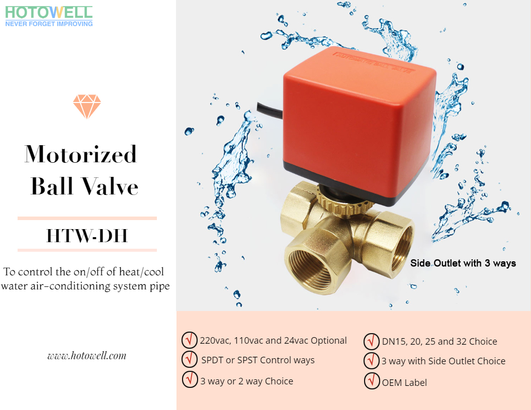 HTW-DH Series Motorized Ball Valves are used to control the on/off of heat/cool water air-conditioning system pipe to control the room temperature. The valve is driven by synchronous motor. The motor connects with room thermostats by the terminal of common, open and close.