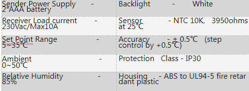 * The thermostat is supplied with a wall-fixing frame, base and a very compact receiver (surface-mounted).