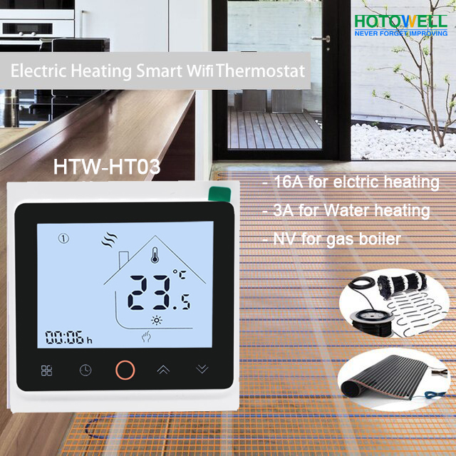 HTW-HT03 series Wifi thermostat is widely used in these environment like Homes, Residential buildings, Schools, Hotels, Hospitals, Offices and etc. to main an ideal room temperature purpose. It can be used in Electric Underfloor Heating, Water Heating or Water/Gas Boiler systems.