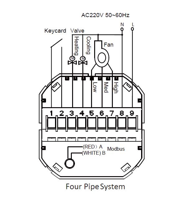 Hotowell FT03 4 Pipe Keycard Setback Sensor Modbus RS485 Termostato Para Fan Coil Unidad