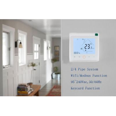 Sensor dual interno y externo Termostato inteligente con pantalla táctil de CA con cable configurable de 2 tubos y 4 tubos