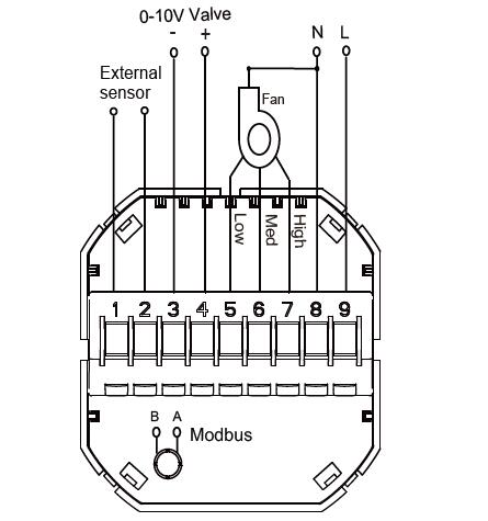 Termostato de ambiente Modbus con sensor externo modulante Fan Coil Hotowell WF01