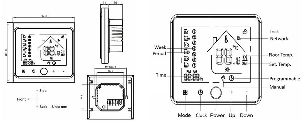 El termostato de calefacción de la serie HTW-HT03P se utiliza ampliamente en entornos como hogares, edificios residenciales, escuelas, hoteles, hospitales, oficinas, etc. para mantener una temperatura ambiente ideal. Puede utilizarse en sistemas de calefacción por caldera de agua/gas, calefacción por suelo radiante eléctrico o calefacción por agua.