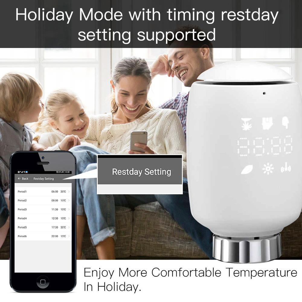 Con el HTW-RT16, puede ajustar cómodamente la temperatura ambiente entre 5-30℃ y ahorrar más de un 15% de energía. la función adicional de refuerzo permite calentar el radiador rápidamente abriendo la válvula durante 5 minutos