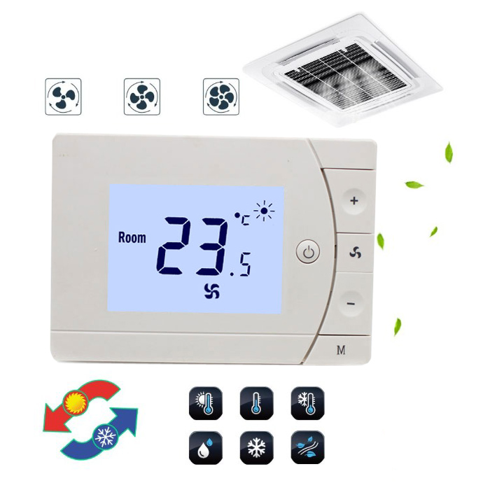 Los termostatos programables de la serie HTW-31-F13 se utilizan para controlar la temperatura ambiente en entornos comerciales, industriales y residenciales a través del control de unidades de ventilador y válvulas de zona motorizadas, ventilador motorizado y válvulas de climatización central y sistema de calefacción y refrigeración, y utiliza NTC para detectar la temperatura ambiente y compararla con el punto de ajuste deseado para mantener la temperatura correcta.