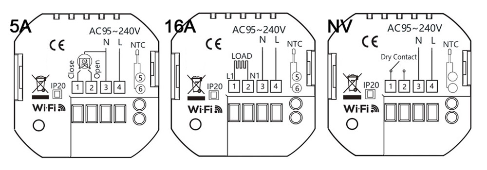 e.g. HTW-WF03-3A refers to application: Water Floor Heating, 3A, NC+NO+Com output terminals