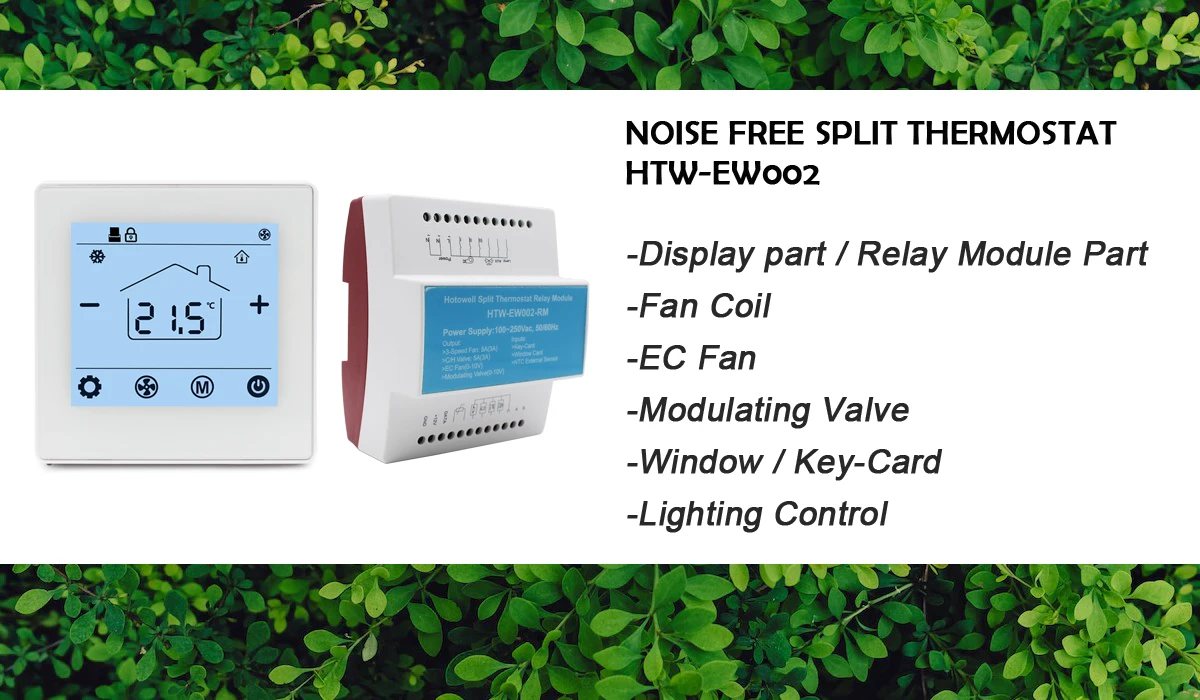 HTW-EW002 es una aplicación de controlador de climatización de estancias sin ruido para instalaciones de agua con ventiloconvectores/ventilador EC/válvula modulante. Está diseñado como un dispositivo de comunicación RTU Modbus para operar la unidad de fan coil / ventilador EC / válvula modulante de una zona e incluye un conjunto de funciones para el control de la iluminación, la ocupación de la zona y el control climático basado en la posición de la ventana. De este modo, se proporciona un alto nivel de confort y un control climático adecuado para garantizar el máximo ahorro energético.