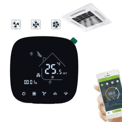 El agua caliente/fría ingresa a la unidad fan coil para suministrar calor o aire frío. Cuando la temperatura ambiente alcanza el punto de ajuste, el termostato enviará una señal para cerrar la válvula de bola y ponerla en el mejor estado. Entonces la temperatura ambiente se mantendrá en un rango confortable.