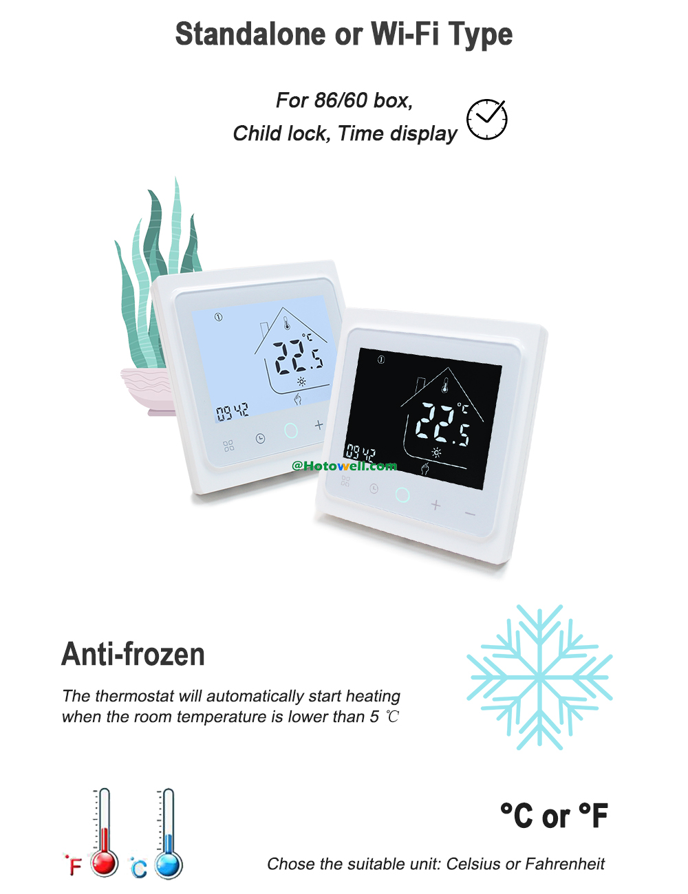 e.g. HTW-HT03P-16A3: Electric underfloor heating, wifi function...