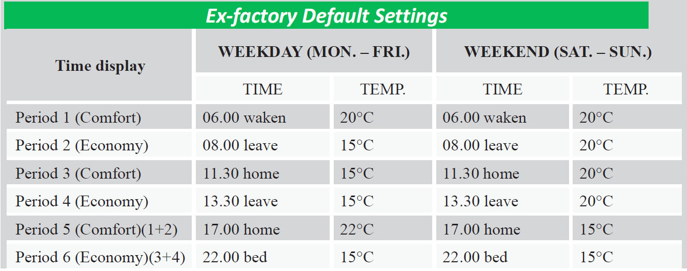 An energy saving mode is built in. This override gives end users a manual or timed set back function, automatically reducing set temperature to a preselected level at a selected time, ideal for holiday or vacant occupancy.