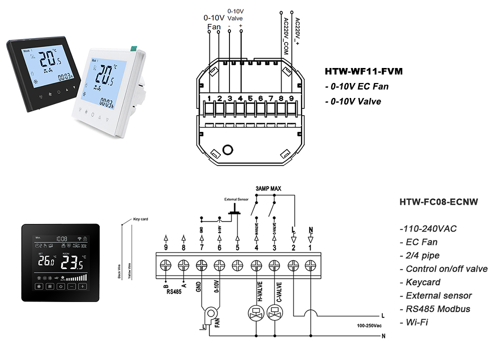 We can choose more functions based on these two models, such as Wi-Fi, Modbus, BACnet, keycard, external sensor, etc.