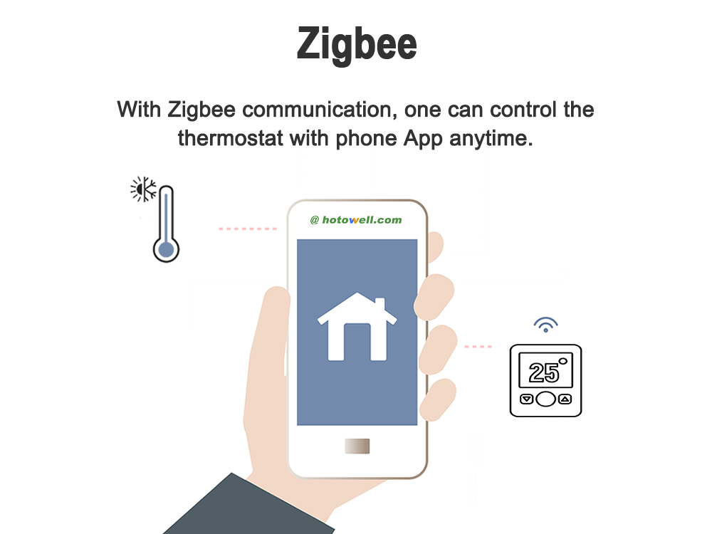 Zigbee is a cutting-edge wireless communication protocol. Known for its low power consumption and reliable performance, it is becoming increasingly popular in the HVAC industry, and widely used in smart home systems. It enables communication between room thermostats and other devices, and allows one to easily control the devices with the app.