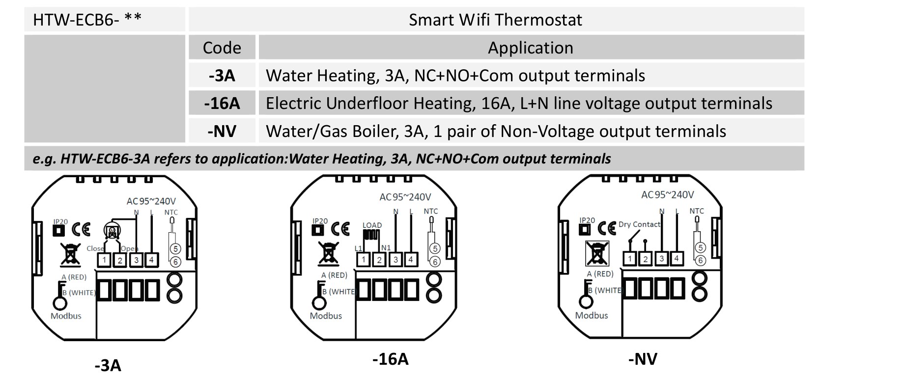 HTW-ECB6 series Wifi thermostat can be used in Electric Underfloor Heating, Water Heating, or Water/Gas Boiler systems.