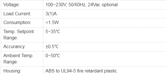 These kind of digital thermostats, applying the most advanced and international standardized microcomputer control chip, measures the indoor temperature by the in-built NTC high-precision sensor.