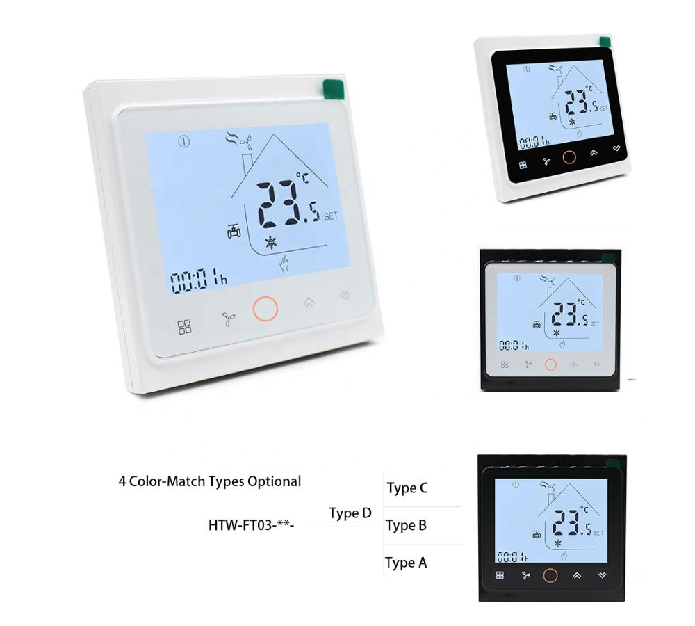 HTW-FT03 series fan coil thermostat is widely used in these environments like Homes, Residential buildings, Schools, Hotels, Hospitals, Offices and etc. to maintain an ideal room temperature purpose.