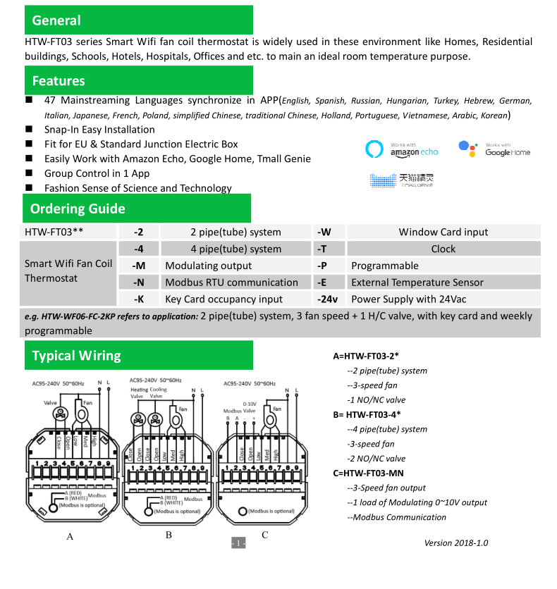 HTW-FT03 series Smart Wifi fan coil thermostat is widely used in these environment like Homes, Residential