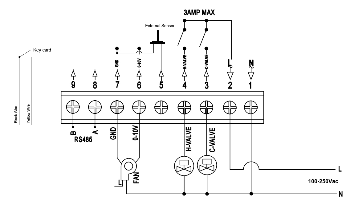 HTW-FC08-ECNW series smart fan coil thermostat is designed with EC Fan + 1 cool valve + 1 heat valve + externals sensor + Keycard + Modbus +WiFi communication functions, it is widely used in these environment like Homes, Residential buildings, Schools, Hotels, Hospitals, Offices and etc. to main an ideal room temperature purpose.