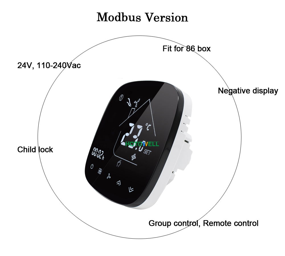 HTW-EB-FC series Smart Wifi fan coil thermostat is widely used in these environment like Homes, Residential buildings, Schools, Hotels, Hospitals, Offices and etc. to main an ideal room temperature purpose.