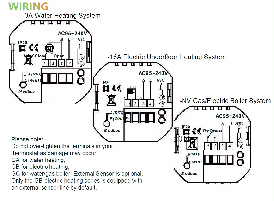 | Current Load | 5 A(water heating/ water boiler/gas boiler) 16 A(electric heating) |