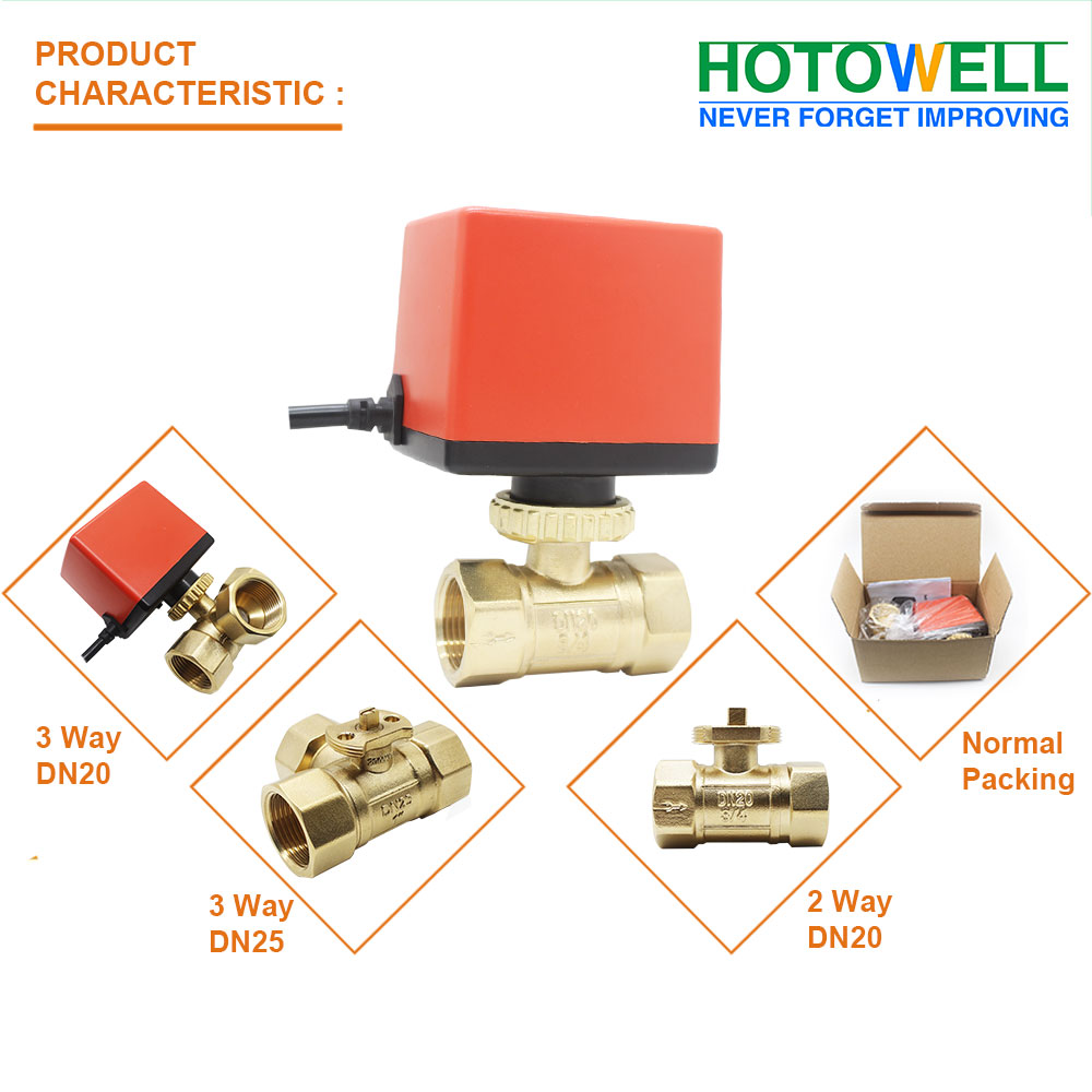 HTW-DH Series Motorized Ball Valves are used to control the on/off of heat/cool water air-conditioning system pipe to control the room temperature. The valve is driven by synchronous motor. The motor connects with room thermostats by the terminal of common, open and close. By sampling and dealing with the site data, the thermostats send control signal to open/close the motor of ball valve. Then the heat/cool water enters into fan coil unit to supply the heat or cool air. When the room temperature reaches the set-point, thermostat will send a signal to cut off the ball valve and make it on the best status. Then the room temperature will keep in the comfortable range.