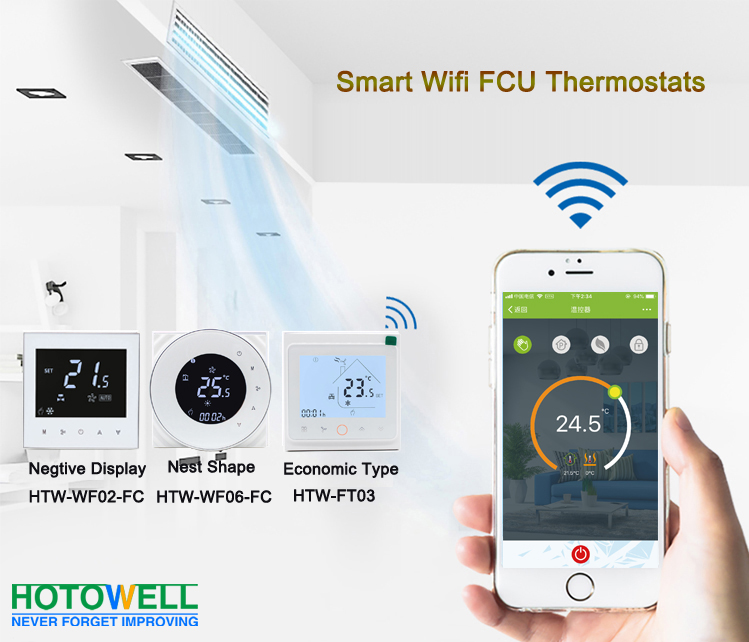 HTW-WF06-FC series Smart Wifi fan coil thermostat is widely used in these environment like Homes, Residential buildings, Schools, Hotels, Hospitals, Offices and etc. to main an ideal room temperature purpose.