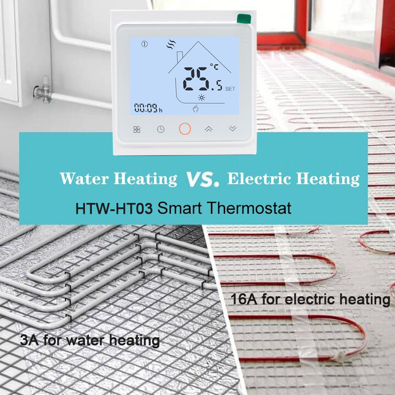 HTW-HT03 series Wifi thermostat is widely used in these environment like Homes, Residential buildings, Schools, Hotels, Hospitals, Offices and etc. to main an ideal room temperature purpose. It can be used in Electric Underfloor Heating, Water Heating or Water/Gas Boiler systems.