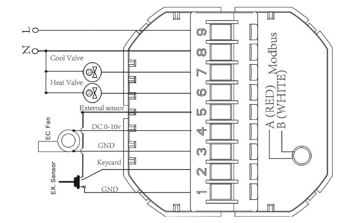 Termostato Sensor Externo Hotowell WF01 EC Fan 0-10V Keycard Modbus