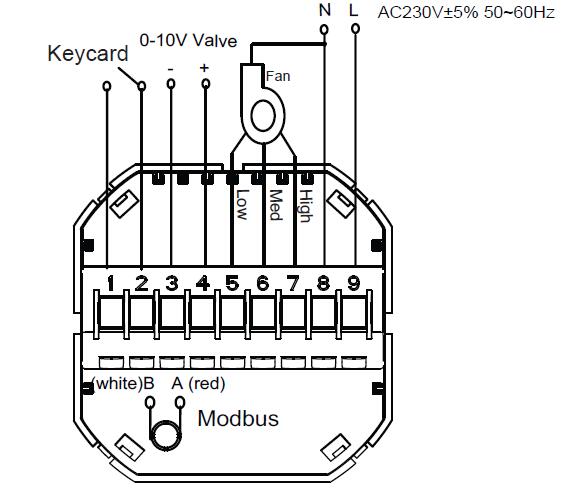 Termostato de válvula modulante Hotowell WF01 Keycard Remote Setback Modbus 0-10V