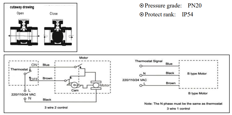 Las válvulas de bola motorizadas de la serie HTW-EG se utilizan para controlar el encendido/apagado de la tubería del sistema de aire acondicionado de agua caliente/fría para controlar la temperatura ambiente. La válvula es accionada por un motor síncrono. El motor se conecta con los termostatos de habitación por el terminal de común, abrir y cerrar. Mediante el muestreo y el tratamiento de los datos del lugar, los termostatos envían una señal de control para abrir/cerrar el motor de la válvula de bola. A continuación, el agua caliente/fría entra en el ventiloconvector para suministrar aire caliente o frío. Cuando la temperatura ambiente alcanza el punto de consigna, el termostato envía una señal para cortar la válvula de bola y ponerla en el mejor estado. De este modo, la temperatura ambiente se mantendrá en el rango de confort. Tamaño de rosca de la válvula: G1/2、G3/4、G1、G1.1/4