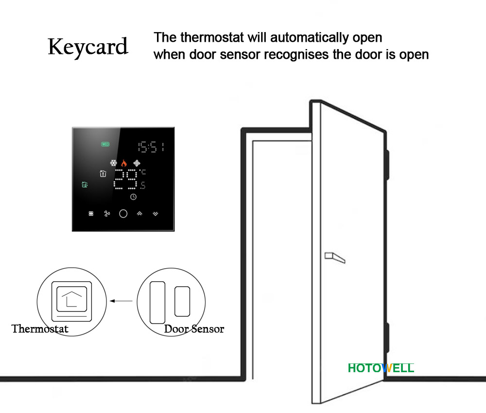Hotowell WF03 3 Velocidades Ventilador 2 Tubos 4 Tubos Sensor Keycard Pantalla LED Full Touch Termostato Programable