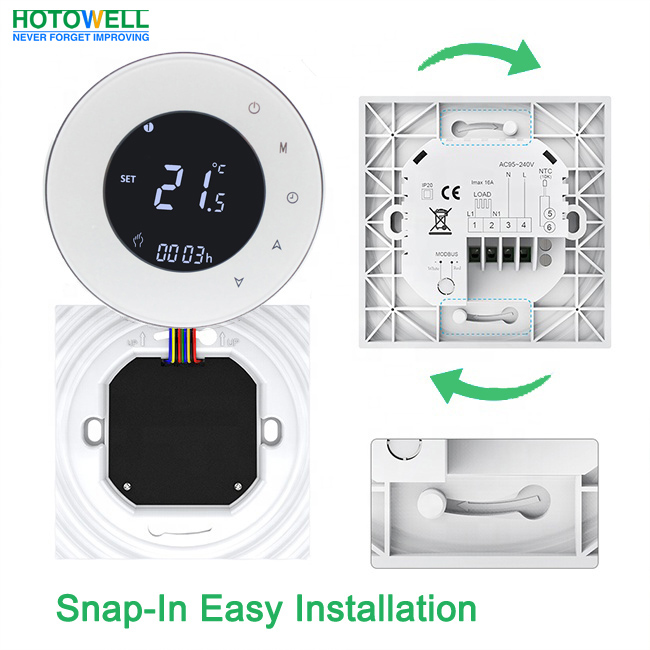 El termostato WiFi de la serie HTW-WF06 se usa ampliamente en estos entornos, como viviendas, edificios residenciales, escuelas, hoteles, hospitales, oficinas, etc., para lograr un objetivo ideal a la temperatura ambiente. Se puede usar en sistemas eléctricos de calefacción por suelo radiante, de calentamiento de agua o de agua / gas.